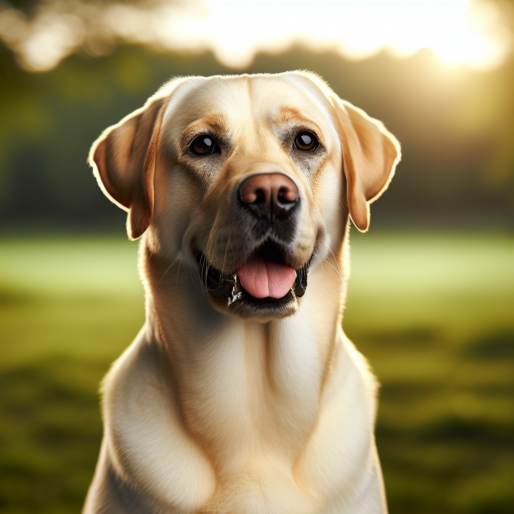Friendly yellow Labrador retriever Captain with a warm, welcoming expression